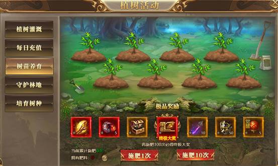 2. 每日最多施肥100次,终极大奖活动期间只可获得一次,其他材料可重复获取;