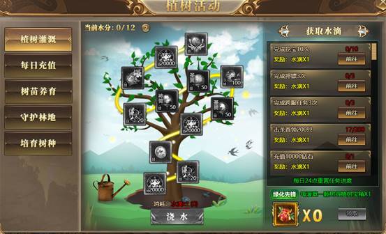 1. 活动期间,玩家可通过完成任务获取水滴,消耗水滴对树木进行浇水即可获取奖励;