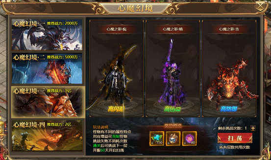 开启条件:开服30天且完成心魔任务开启炼心功能