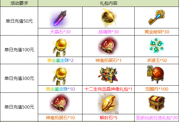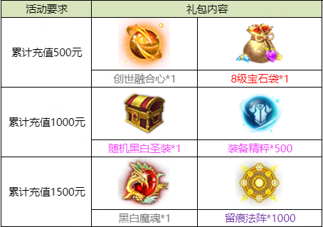 2.累计充值:活动期间真实充值达到申请对应挡位奖励,累充奖励活动期间仅限领取一次;