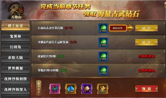 2. 完成征途任务可获得大量奖励;