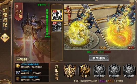 第二纪元-太始上线!游戏右上角“轩辕战纪”图标打开