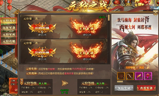 打开方式:游戏界面左侧—贵宾特权—元狩之战