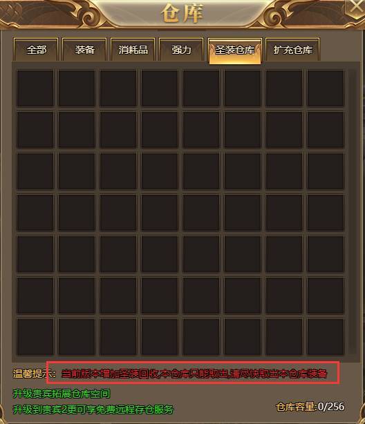 混沌圣装仓库将在之后的版本进行移除,本版本可取出不可存入,请尽快取出!